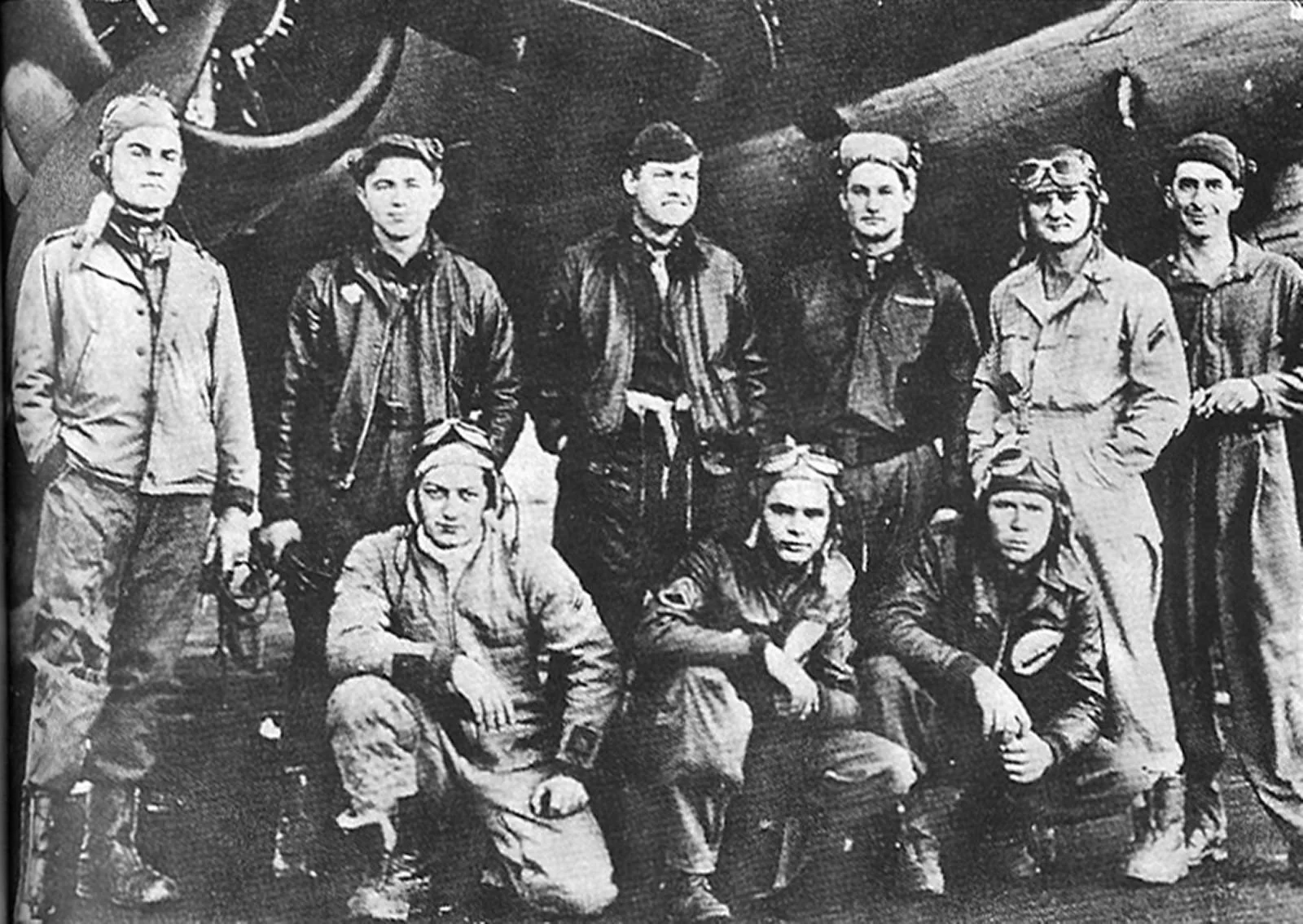 Crew of “Bockscar” Master Sgt. John Kuharek (Flight Engineer), Staff Sgt. Albert Dehart (Tail Gunner), 2nd Lt Fred Olivi (Third pilot), Staff Sgt. Ed Buckly (Radar Operator), Capt. Kermit Beahan (Bombardier), Maj. Charles Sweeney (Pilot), Sgt. Raymond Gallagher (Asst. Flight Engineer), Capt. James Van Pelt (Navigator), 1st Lt. Charles Alsbury (Copilot), Sgt. Abe Spitzer (Radio Operator). Not pictured: Cmdr. Fred Ashworth (Weaponeer) and Lt. Jacob Beser (Electronic Countermeasures- Beser also flew aboard Enola Gay on August 6).