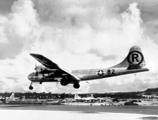 Enola Gay safe return to Tinian, after the mission at 2:58 p.m.