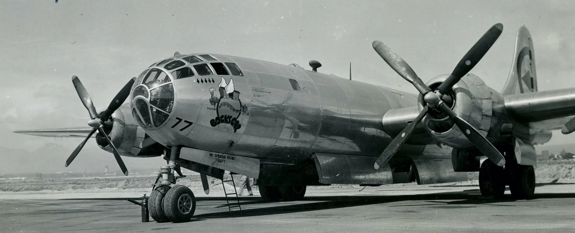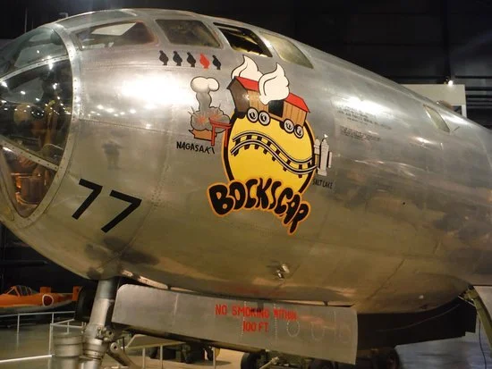 “Bockscar" was the name given to the B-29 which flew the 2nd and final atomic mission over the city of Nagasaki on August 9, 1945, effectively bringing a decisive end to World War II. Named as a play on words for its usual assigned pilot, Frederick C. Bock, Col Tibbets chose Maj. Charles Sweeney, the 393d Bombardment Squadron's commander, to fly the mission, along with his crew of 'The Great Artiste', the B-29 originally scheduled to fly the 2nd nuclear mission.